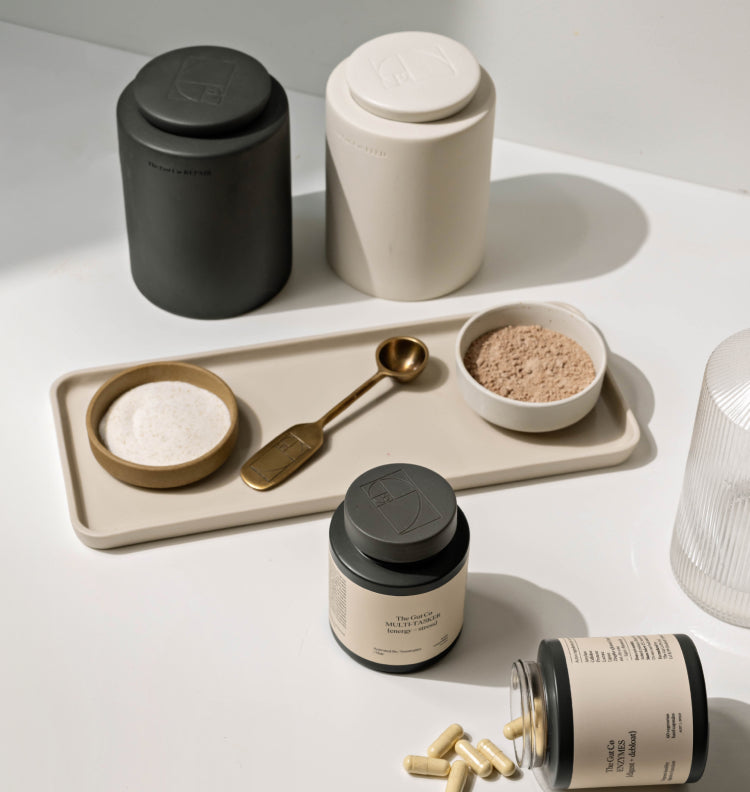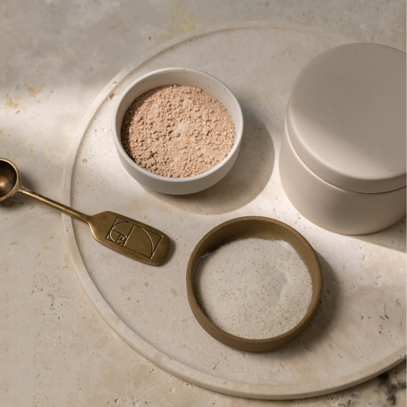 Our collagen provides essential strength and structure to the skin, while hyaluronic acid enhances hydration. Astaxanthin, a powerful antioxidant, combats ageing signs. For gut health, ingredients like Glutamine, Aloe vera and Zinc repair the gut lining, while Pomegranate husk and Apple pectin nourish the gut microbiome.